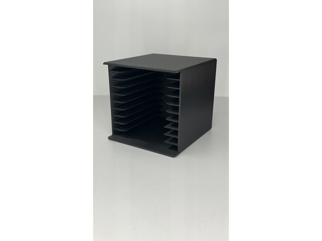 Elegantní organizér na CD/DVD s kapacitou 10 nebo 15 disků. Přehledný, odolný a moderní stojan, vyrobený z kvalitního PLA pomocí 3D tisku. Dostupný v různých barvách.